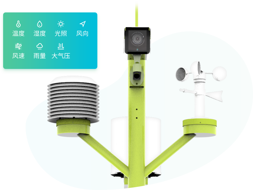 一體化設(shè)計,外觀精美,高度集成,采集空氣溫度、空氣濕度、光照度、氣壓、降雨量、風(fēng)速、風(fēng)向七要素,實時視頻監(jiān)控田間動態(tài)。